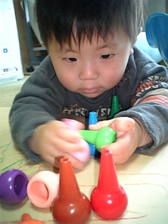 4個を重ねた時に、ハッと顔をあげて私を見て笑った!