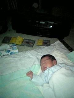 抱っこしつつ、胎盤などの処置。うっすら痛いのが泣けますね。