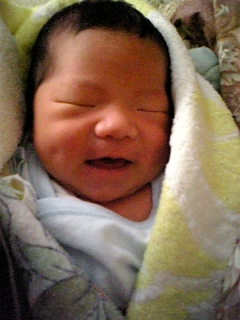 「頭が見えてきた」と助産婦さんは言って、ドクターを呼んできました。途中までは「痛い」を連発していたチナドリが、この辺からがらっと変わって集中してきました。やがて、ドクターがはさみを取り出して、なにかをパチンと切りました・・・・。
